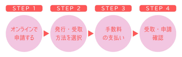 なお、オンライン申請の切り替えの時期に郵送で申請された申請に関しては、従来通りの方法で発行いたします。