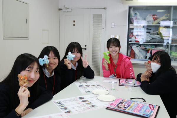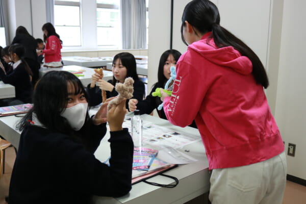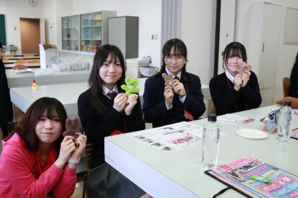 「この表情かわいい!」「といたんと一緒に作業できて楽しい!」と笑いが絶えず、完成した人形を手にした生徒たちは満足そうな笑顔を見せていました。といたんのサポートもあり、ものづくりの楽しさと温かい交流に包まれた時間となりました。