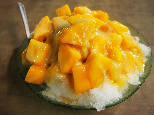 特に夏に人気のスイーツ。新鮮なマンゴーがたっぷり乗った豪華な一品です。