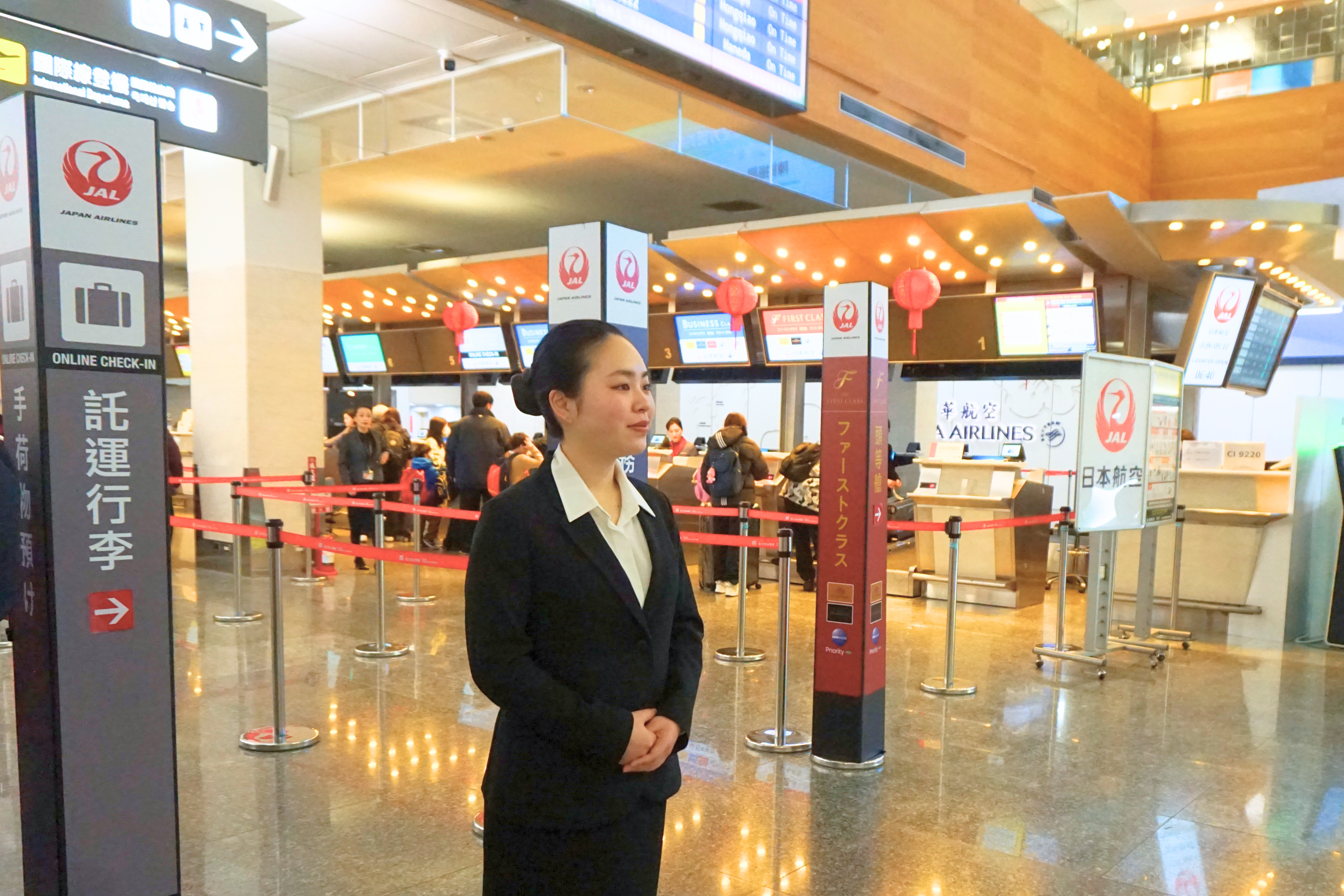 今回のインターンシップでは、日本航空台北事務所の皆さまのご協力のもと、グランドスタッフ業務を二日間体験させていただきました。
