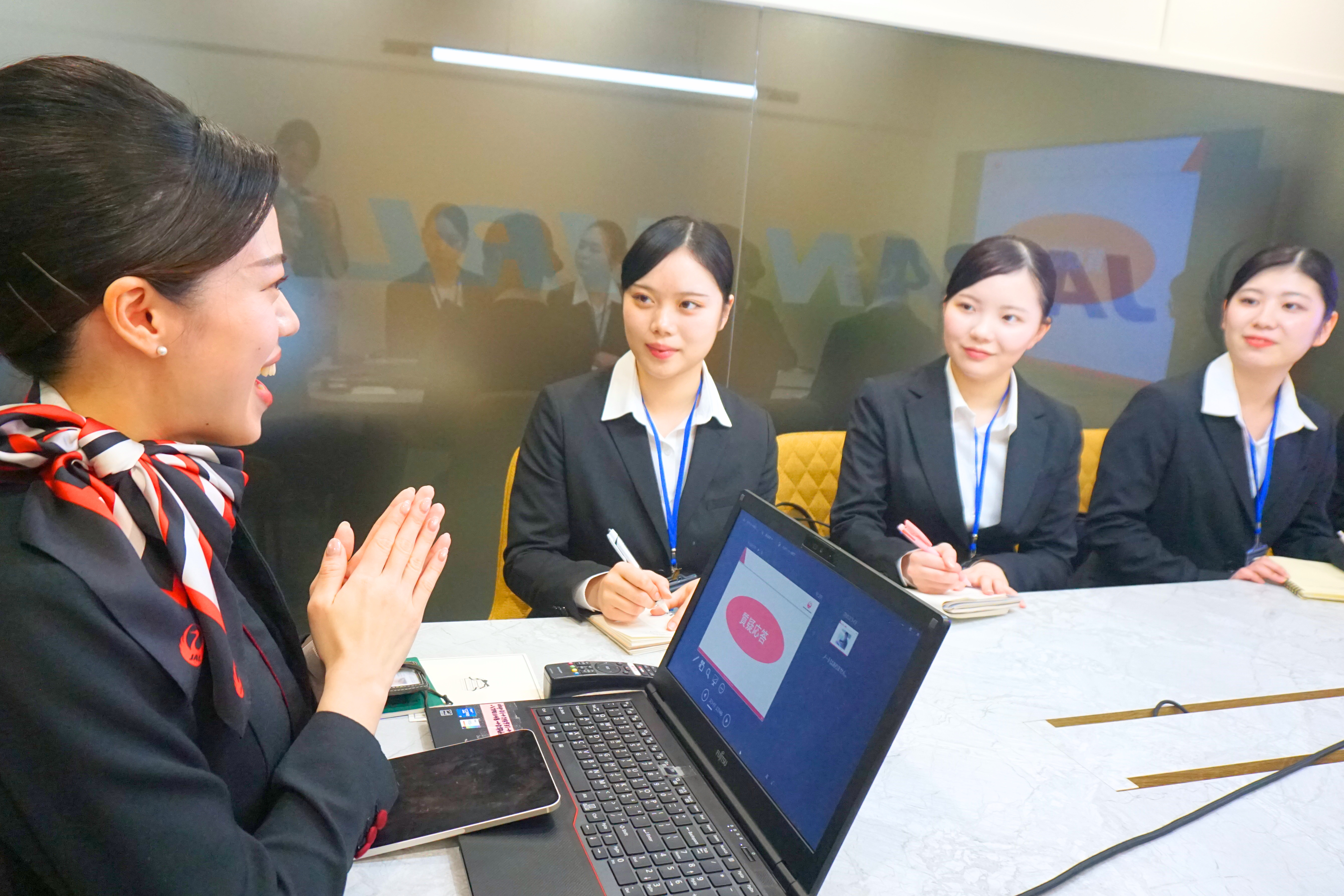 事前研修で講義をしていただいた客室乗務員の方から、現地で改めてお話を伺う機会もありました。
