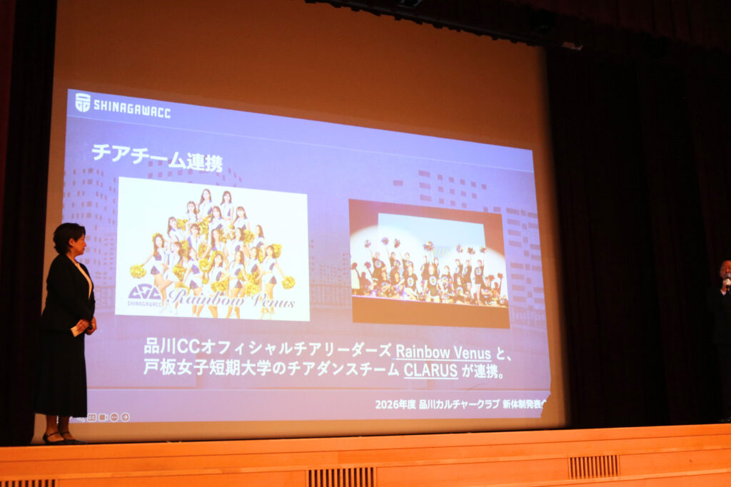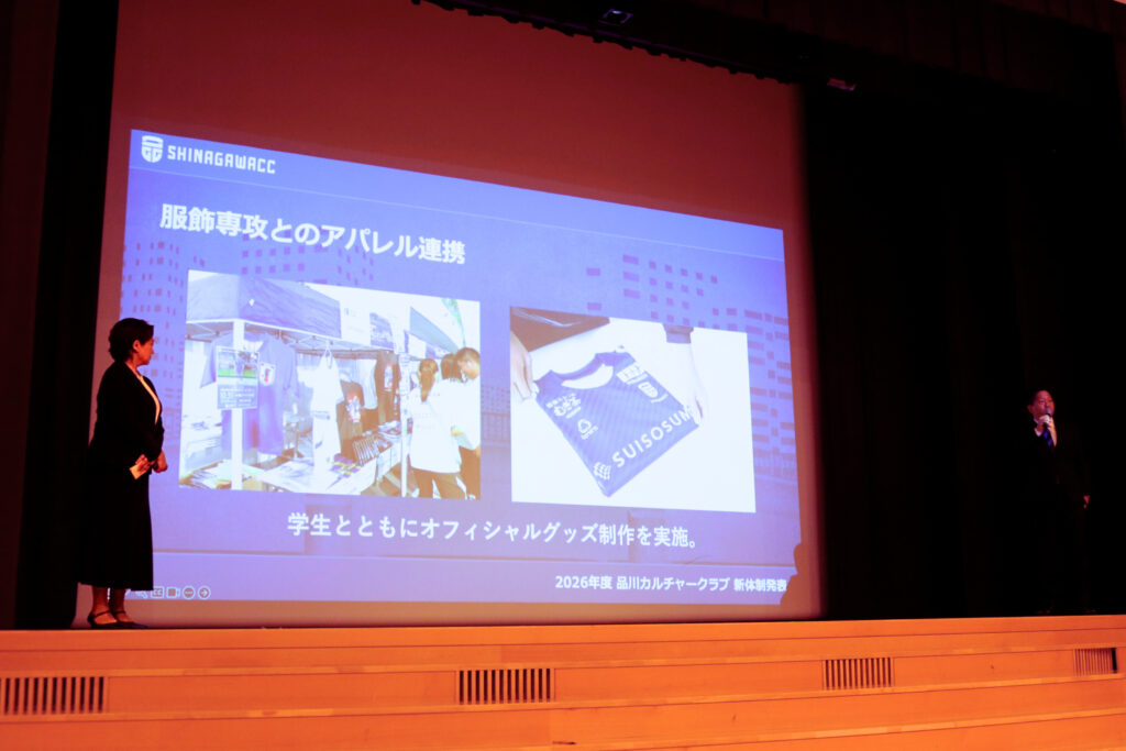2026年より本学との提携が実現した品川カルチャークラブ(以下、品川CC)は2026年3月、TOITAホールで新体制発表会を行いました。 本連携によりスポーツビジネスを軸とした、企画・運営・広報・商品開発・サービス提供や、パフォーマンスの場に学生が関わることで、多くの現場を体験し実践力を身につけていきます。