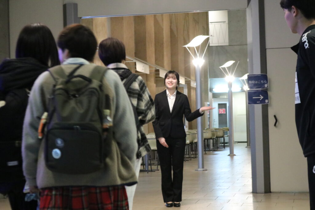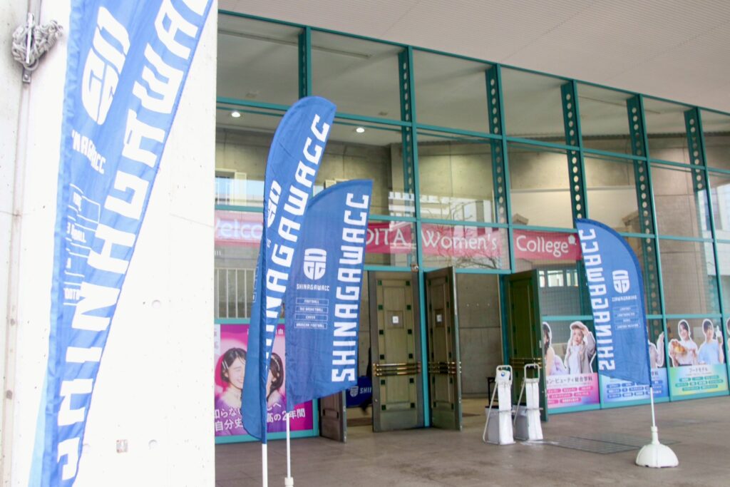 学生も運営に関わりお客様の誘導やご案内も 学内の至る所にクラブチームの装飾で熱気に溢れました