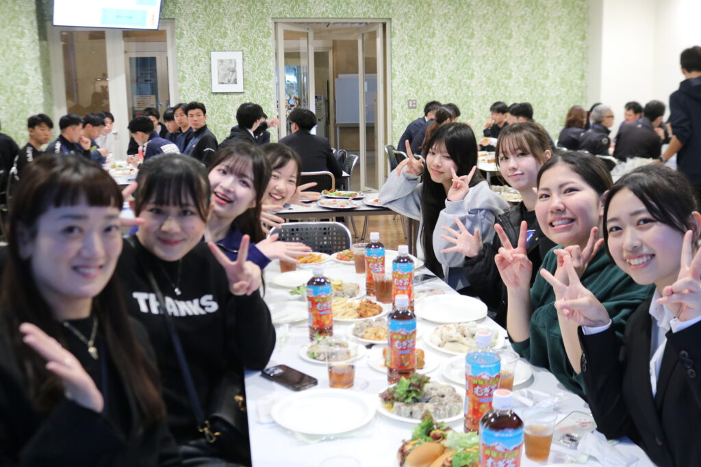 品川CCの吉田代表からはチアリーディングのパフォーマンス連携以外にも、イベントの共同運営や商品開発、アパレル開発の連携など、様々な取り組みを通した相互の活性や発展に期待が寄せられました。 本学の白川学長ともがっちり握手。今後の連携にご期待ください! イベント後は選手やチーム関係者との親睦会で一体感も生まれました。