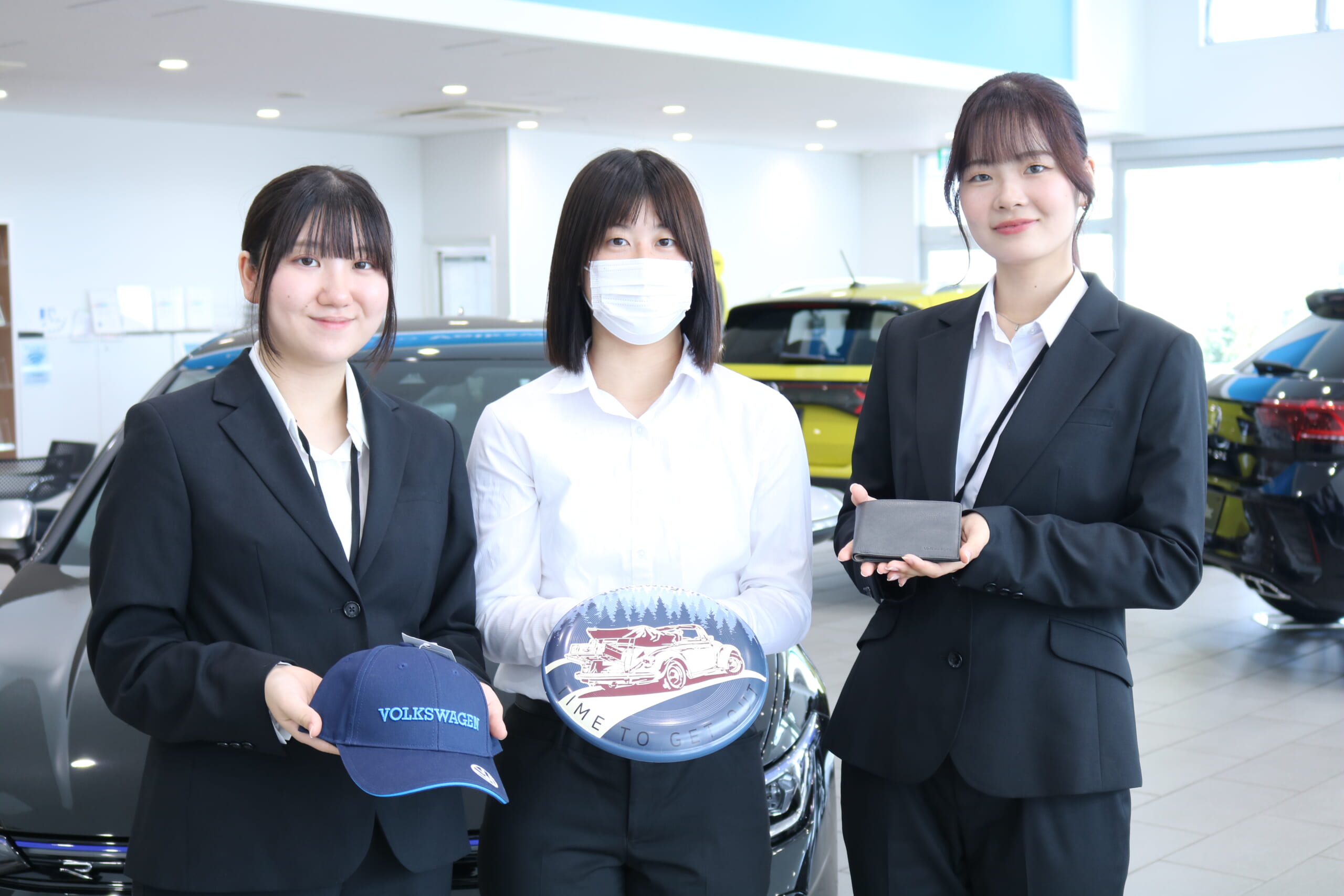 2日目には、ブログ投稿と納車式の内容を友人と考えました。ブログ投稿では、店舗で実際に販売されている商品についての投稿を行い、フォルクスワーゲン限定の財布について紹介しました。投稿文に関して、導入の部分は思っていたよりもうまく文章にすることができず、企業の方の力もお借りしながら、無事投稿することができました。この経験を経て、カーディーラーの営業方法は、お店にいらしたお客様への接客だけではなく、お客様が利用しているSNSなどに自分たちが取り扱っている商品等を投稿し、沢山の人に企業を知ってもらうことも大切な営業のひとつなのだと実感しました。