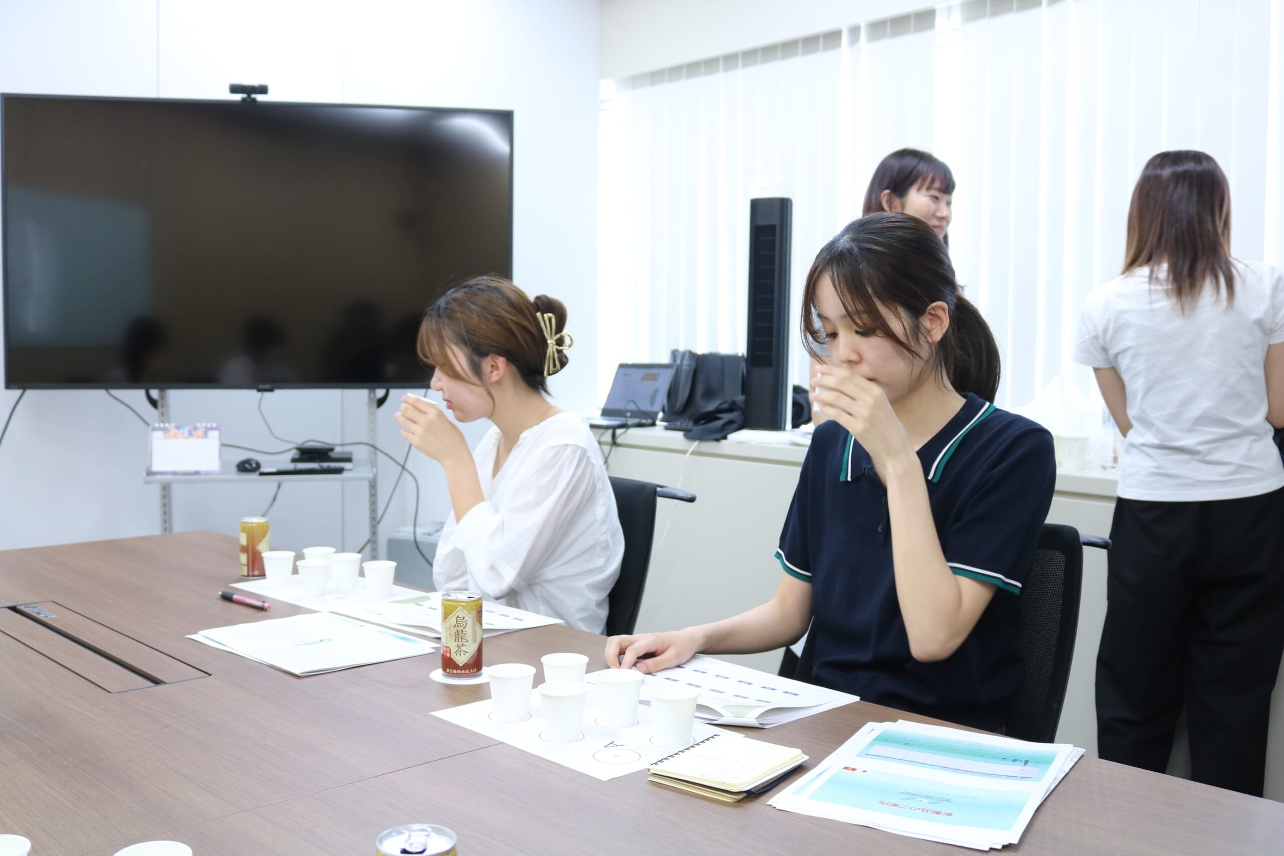 官能・規格検査では、機械で評価しにくい味や触感を人間の感覚器官で評価する検査を行っており、人それぞれ五感を感じる感覚は生活環境や食習慣によって変化するため、検査担当の方は普段の生活から気を使わなければならないことを知りました。お客様に安全で、安心な買い物をしていただくためにとても重要で大変な仕事なのだと身をもって体験することができました。