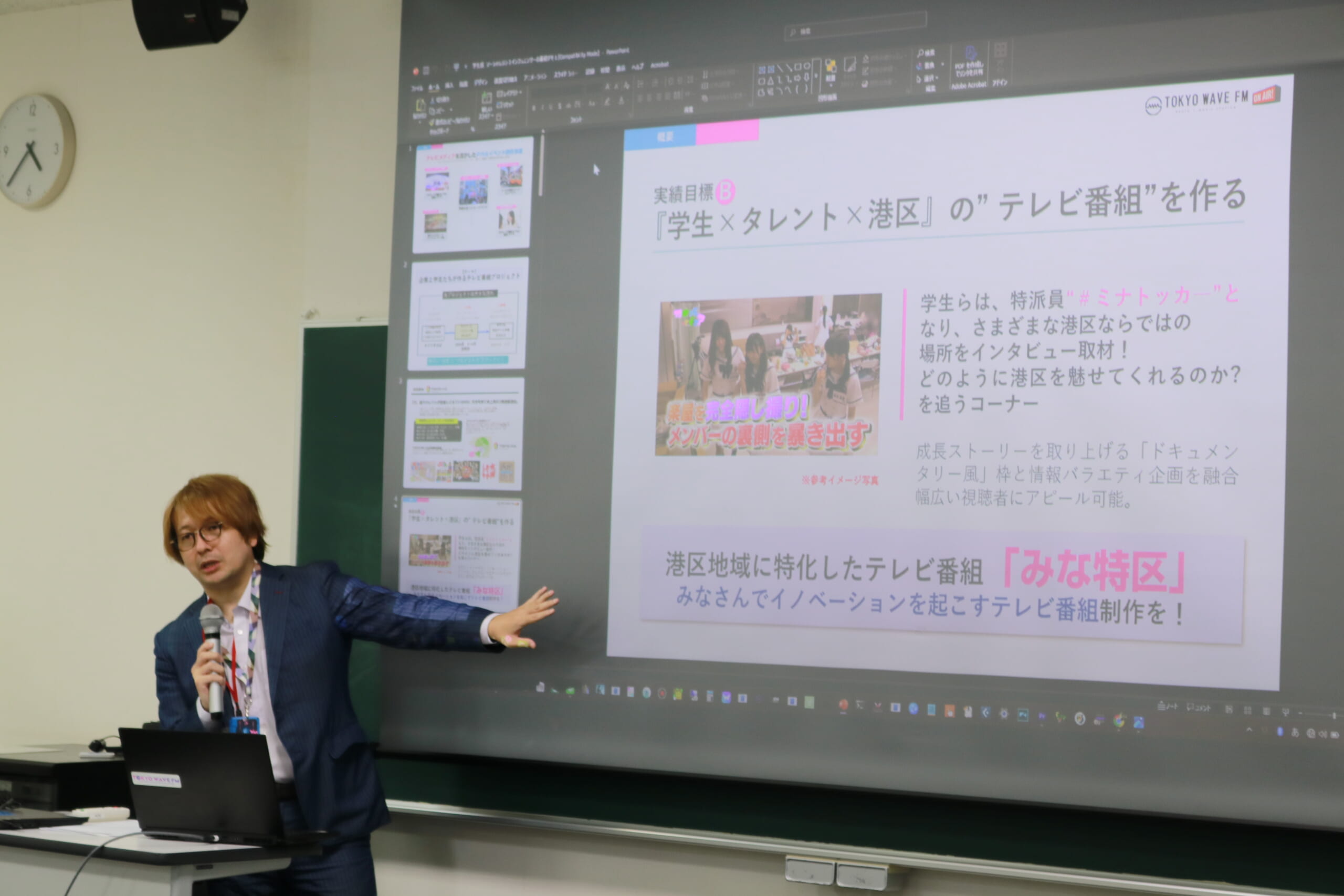 初回授業では、本プロジェクトの内容や、番組を制作するにあたって必要な知識を制作会社の方からご教示いただきました。