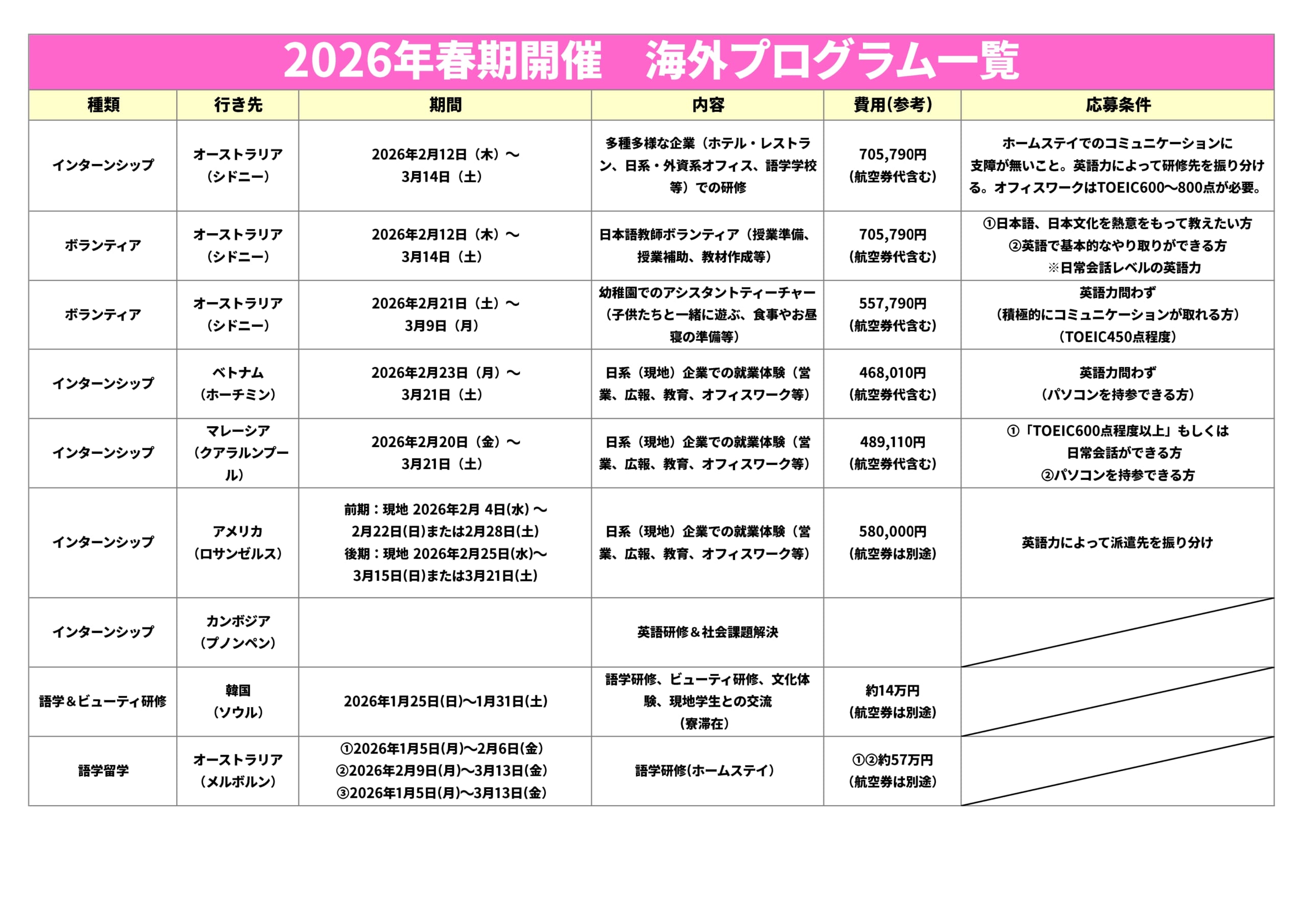 語学力を高めたい、異文化の中で自分を磨きたい——そんな思いを胸に、一歩踏み出す勇気を持つ学生たちを、私たちは応援しています!