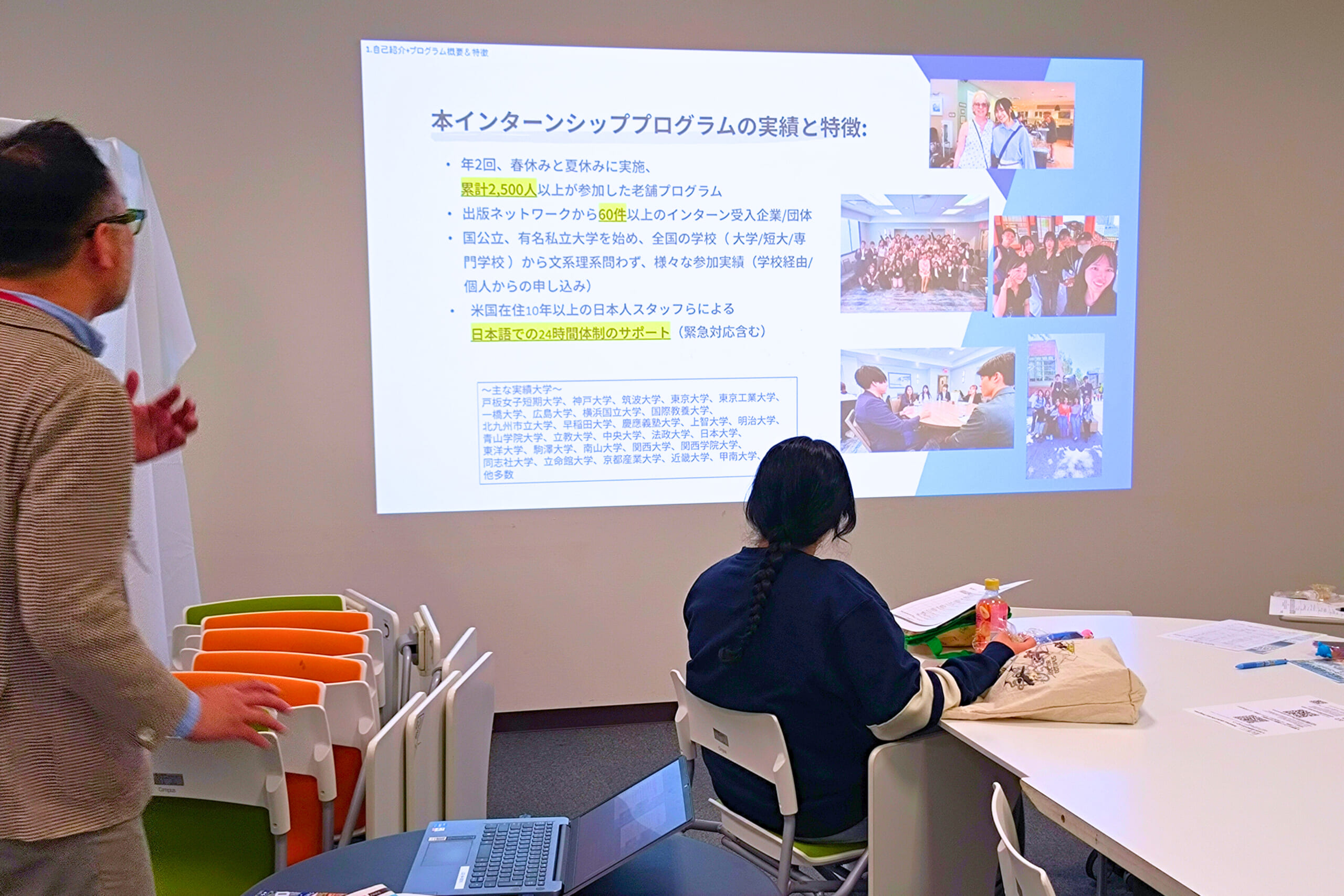 アメリカ・ロサンゼルスでのインターンシッププログラムの説明会を実施しました。今回は、現地でのインターンシップをコーディネートするライトハウス様をお招きし、受け入れ企業や実習内容、現地到着後の合同講習などについて詳しくご説明いただきました。