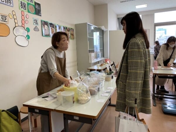 ②「味噌と親しむ」コーナーでは、昨年に引き続き味噌や麹を使って、塩麹、醤油麹、玉葱麹、生姜麹などの紹介と効用を伝えました。実演や物を見ることで興味・関心を寄せて頂く良い機会となりました。