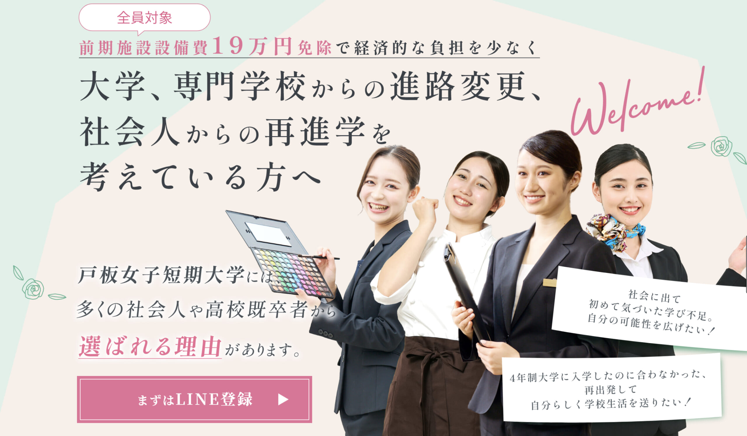 戸板女子短期大学入試・広報部では、LINEの”トーク機能”で入試やオープンキャンパスの質問にお答えします。