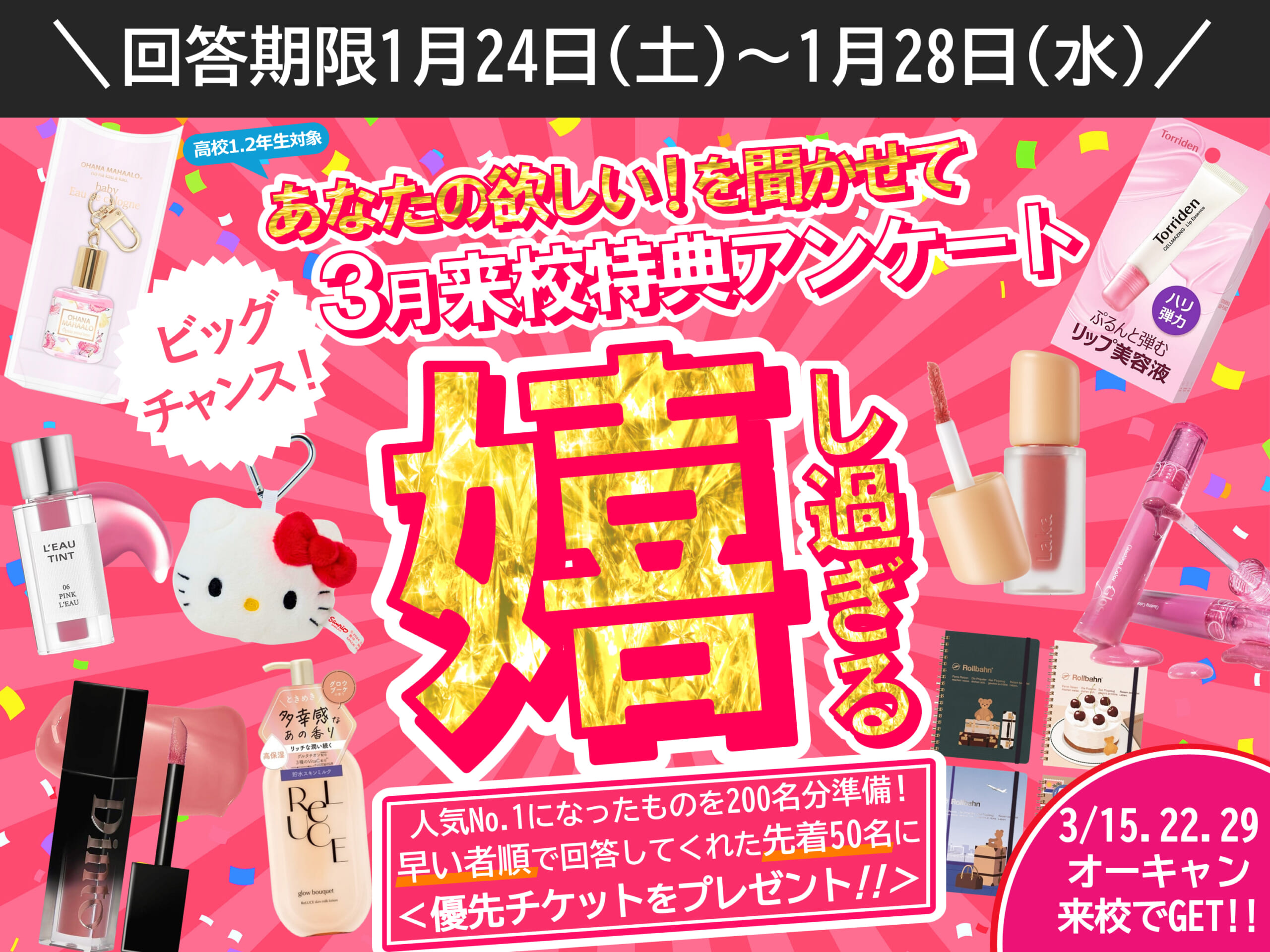 高校生アンケートで人気No.1に選ばれたコスメが、3月のオープンキャンパス来校者限定でもらえる💄✨