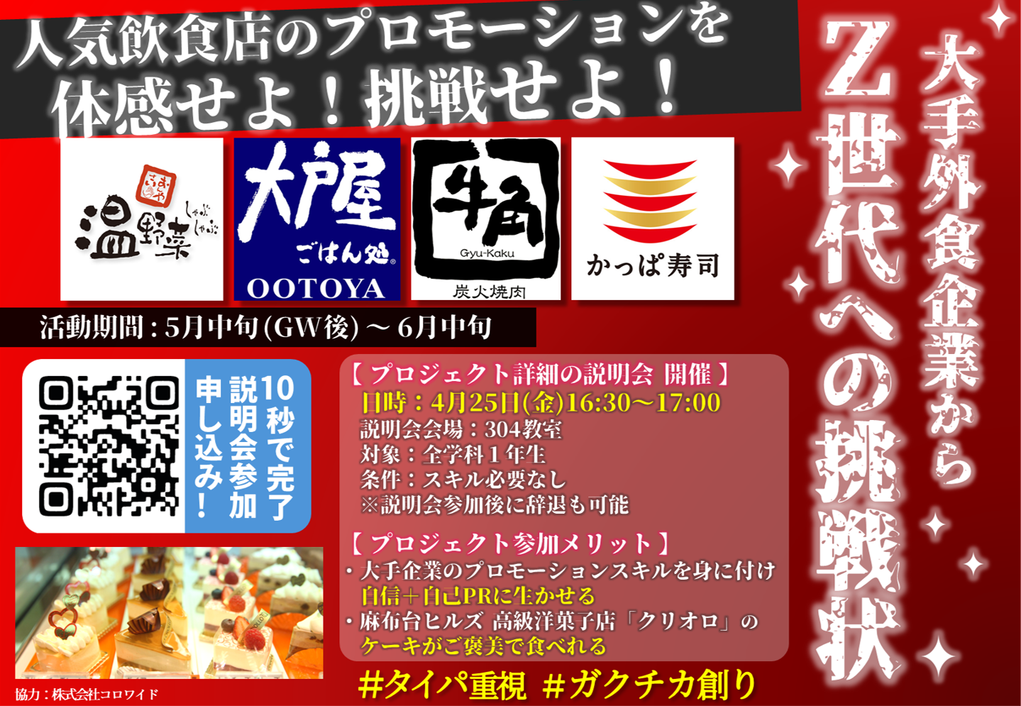 本プロジェクトは、全国で多様な外食ブランドを展開する株式会社コロワイド様との産学連携企画です。